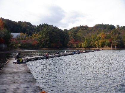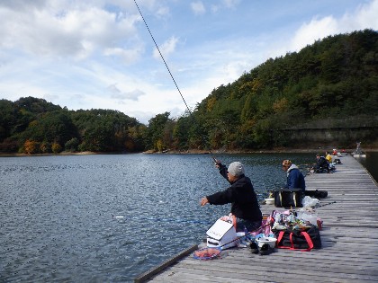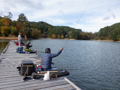 2025年11月2日(日) 天気:曇り 午前10時(気温12度、水温13,5度) 今日の美鈴湖は、風が強く釣り難い中、県内外から26人のお客様にお越しいただきました。 《今日の水位》