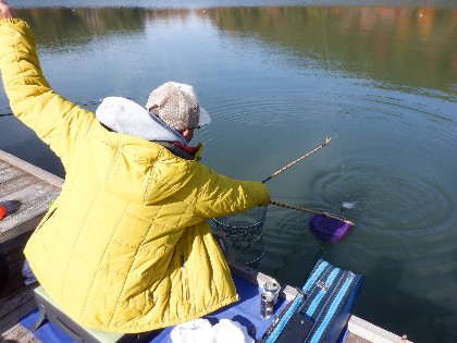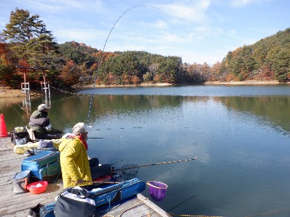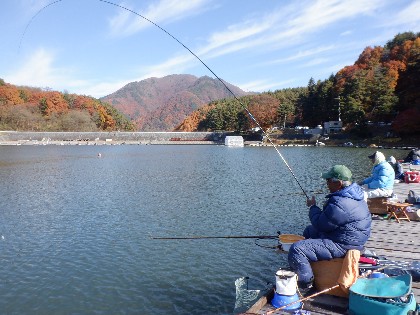 2025年11月16日(日) 天気:晴れ 午前10時(気温5度、水温10度) 今日の美鈴湖は天候に恵まれ、二つの団体様例会ご参加の方々を主に、26人のお客様にお越しいただきました。 《今日の水位》