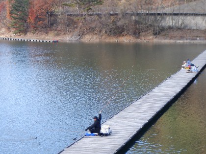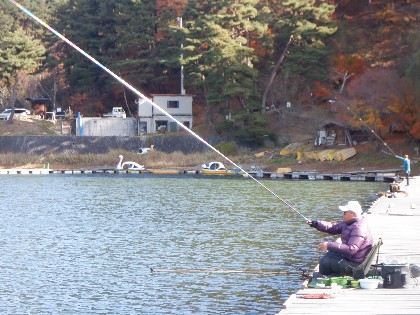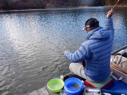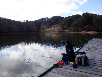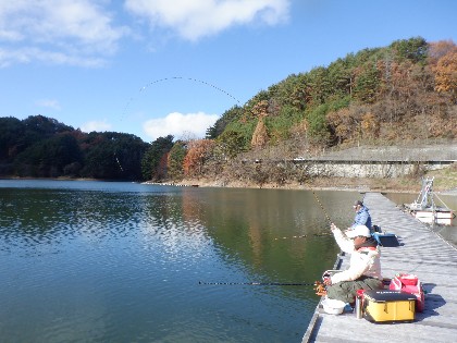 2025年11月22日(土) 天気:晴れ 午前10時(気温4度、水温9度) 今日の美鈴湖は、午前中時おり湖面に陽射しが当たる中、9人のお客様にお越しいただきました。 《今日の水位》