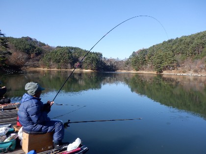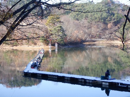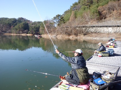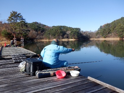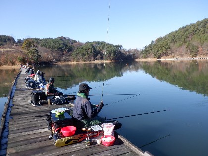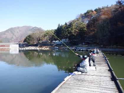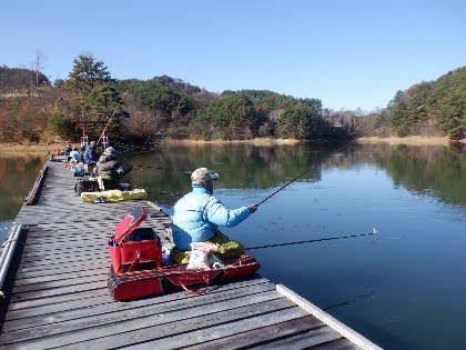 2025年11月30日(日) 天気:晴れ 午前10時(気温2度、水温8度) 今日の美鈴湖は、早朝の冷え込みで桟橋に霜が降り寒い中、33人のお客様にお越しいただきました。 《今日の水位》
