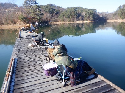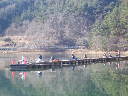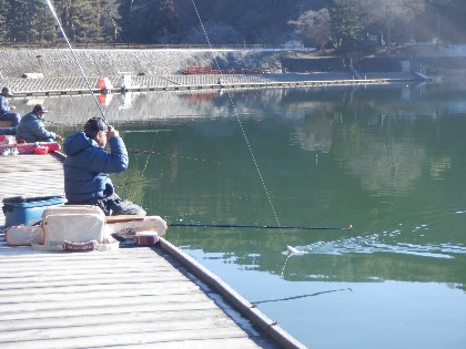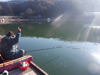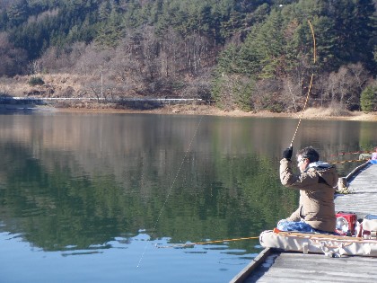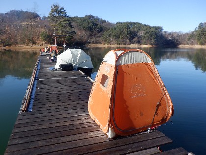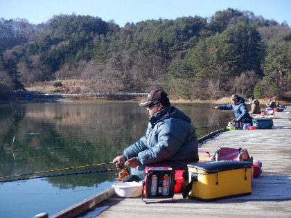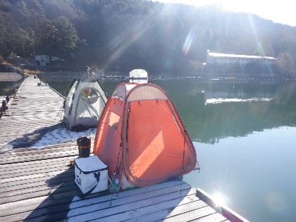 今日の美鈴湖は早朝からよく晴れて、穏やかな釣り日和でした。そんな中、ワカサギ釣りは12人、へら鮒釣りでは、8人のお客様にお越しいただきました。