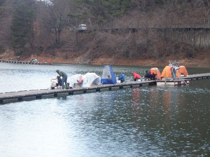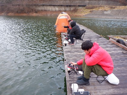 今日の美鈴湖は、この時期としては暖かい中、ワカサギ釣りは40人、へら鮒釣りでは7人のお客様にお越しいただきました。