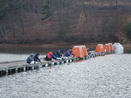 ・ワカサギ釣りは、70匹から99匹までの釣果に6人、100匹以上の釣果が3人でした。