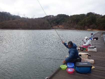 今日の美鈴湖は、昨日と違い微風でも寒さを感じる天気でした。そんな中、ワカサギ釣りは9人、へら鮒釣りでは5人のお客様にお越しいただきました。
