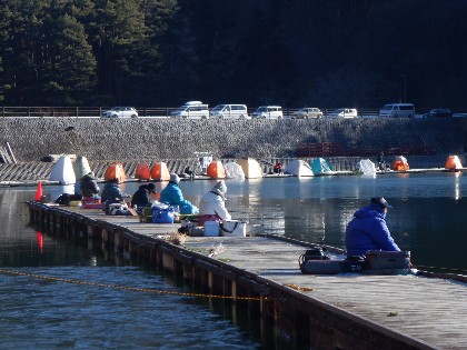 今日の美鈴湖は、昨日同様湖面に氷が張り、午後になってもとけない場所がありました。そんな中、ワカサギ釣りは61人、へら鮒釣りでは、8人のお客様にお越しいただきました。