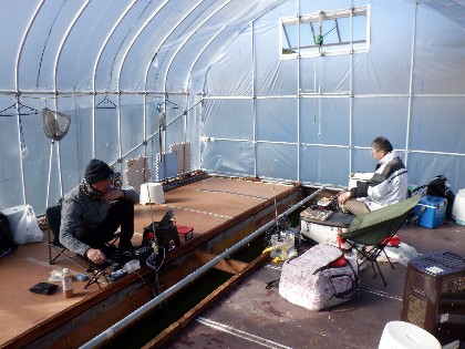 今日の美鈴湖は、昼を過ぎても気温がプラスになる事が無く寒い日でした。そんな中、ワカサギ釣りの方、21人のお客様のみお越しいただきました。