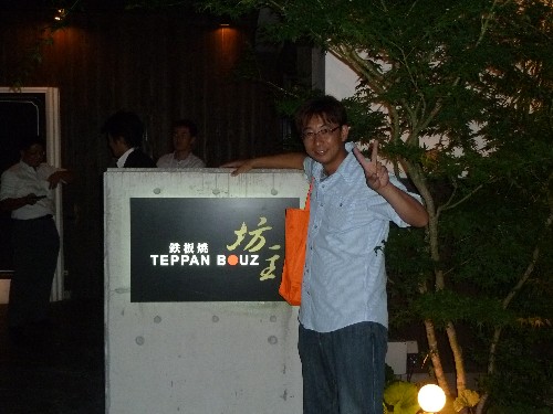 今回懇親会会場の鉄板焼 坊主さんと幹事のチャラ嶋君です。