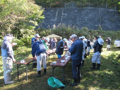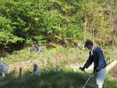 |  ー10月24日(金)ー 北アルプスの山々も紅く色づき始めた10月下旬。開催時刻(午前8時)の気温は6℃未満と10月一番の冷え込みとなった中、「ため池の景観整備イベント」が開催されました。 今年の会場となった「居谷里ため池」は、1号~3号まである管内最大級のため池です。1号・2号で貯水された水は、3号で調整された後、市街地東側の山麓沿線地域を中心に潤しています。 ため池周辺には遊歩道もあり、昔からピクニックや魚釣りなど子供たちの遊び場や市民の憩いの場として、長年にわたり地域の方々に親しまれてきました。 そうした歴史のあるため池の整備に、各関係機関・地域住民の方々含め計35名の方にご参加いただき、ため池周辺・遊歩道の草刈り、木々の伐採、流木の撤去やゴミ拾いなどの作業を行っていただきました。 ・ため池の堤体内外の草刈り ・遊歩道の草刈り 約1時間30分かけて作業を行っていただいた結果、 <1号ため池>  ・流木の撤去・ゴミ拾い 作業終了後、軽食として「豚汁とおにぎり」を振舞いました。イベント開催中の気温は13℃程度、作業終わりも相まって皆さん、お替りをしていました。 そして「お楽しみ抽選会」を開催! 昨今の異常気象により、ため池の重要性はより高まっています。「居谷里ため池」も例外ではなく、夏の渇水時期には、ため池に貯水された水を農業に活用している一方、大雨時には洪水調整の機能を果たしています。近年では令和2年度から3年度にかけて国・県が主体となり改築工事が行われ、現代の豪雨災害時の被害を防止するとともに、守り続けられています。 そのような私たちの生活を支えるため池の重要性を多くの方々に知っていただき、後世へと引き継いでいけるよう、今後も取り組んでいきたいと思います。  | |