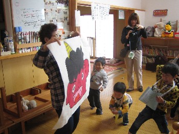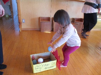 2月3日の今日、ぱおぱおでは節分にちなんでボールで豆まきを楽しんで、スタッフ手作りのすいとんを味わい、おみやげのうどんを作ってたのしくすごしました。