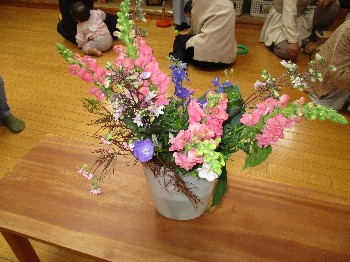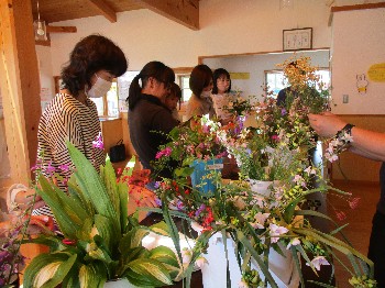 恒例のフラワーアレンジメントが、2日月曜日に開催されました。清々しい晴天の一日、スタッフが用意した野の花をたくさんセットして、参加者を迎えました。