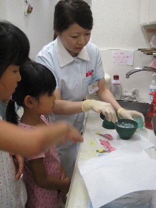 歯磨きをして、ばい菌をやっつけたり、バキュームでお水を吸ってみたり気分はもう!歯医者さん!(^^)!